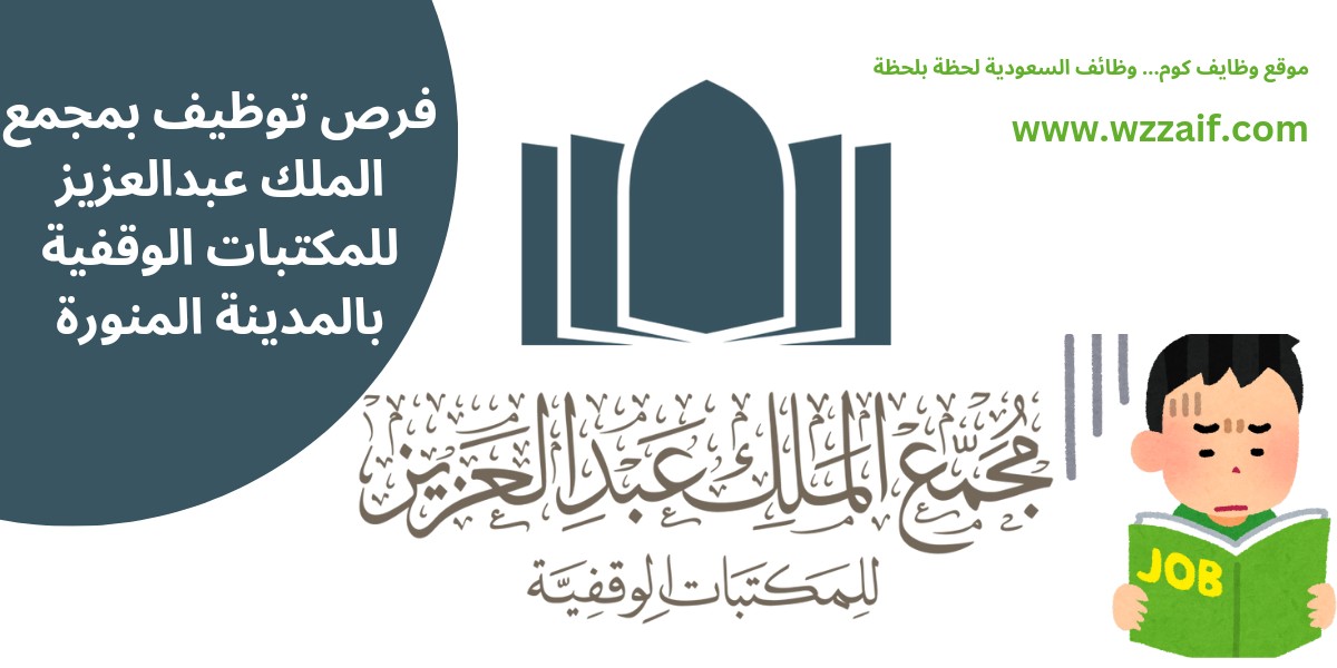 اعلان وظائف حكومية، حيث أعلن مجمع الملك عبدالعزيز للمكتبات الوقفية عن توافر عدد من الوظائف الشاغرة للحاصلين على الدبلوم والبكالوريوس والماجستير فأعلى للعمل في المدينة المنورة بنظام التعاقد عن طريق المسابقة الوظيفية وفقاً للتفاصيل التالية: