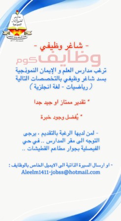 قدمنا لكم اعلان وظائف مدارس العمل والايمان النموذجية توفير فرص عمل للسعوديين بعدة تخصصات تعليمية داخل الرياض