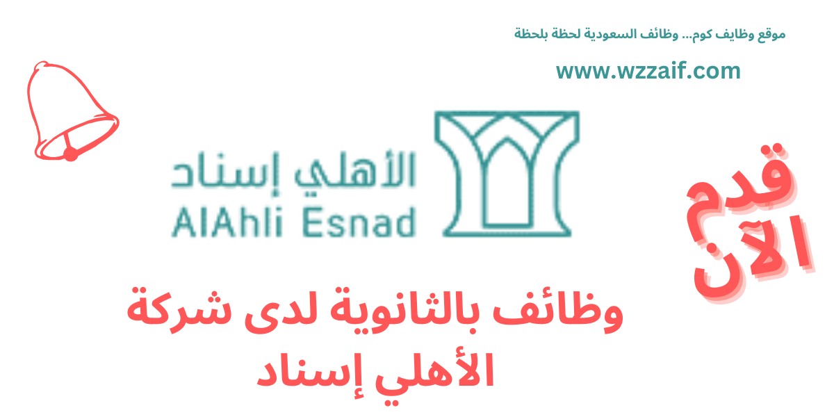 أعلنت شركة الأهلي إسناد عن توافر عدد ١٢٠ وظيفة شاغرة للرجال والنساء الحاصلين على الشهادة الثانوية والدبلوم والبكالوريوس فأعلى (منها وظائف بدون خبرة) للعمل في مختلف المناطق وذلك على النحو التالي: