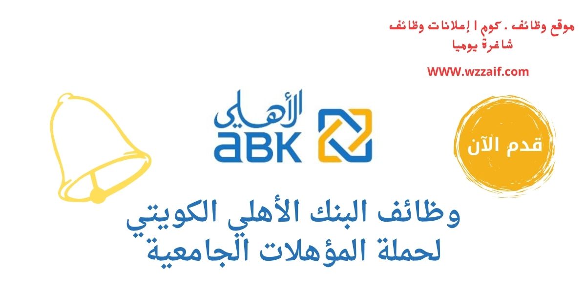 أعلن البنك الأهلي الكويتي عن توفر وظائف إدارية وفي مجال تحسين الاداء للمبيعات لحملة المؤهلات الجامعية العليا مع ملاحظة أن الوظائف متاحة للكويتيين والأجانب وفقا للاتي.