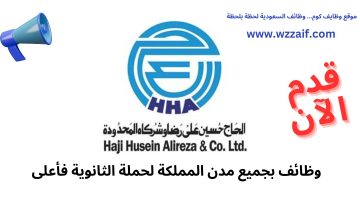 توظيف فوري لحملة الثانوية فأعلى لدى شركة الحاج حسين علي رضا بعدة مناطق بالمملكة