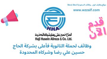 وظائف لدى شركة الحاج حسين على رضا وشركاه لحملة الثانوية فأعلى