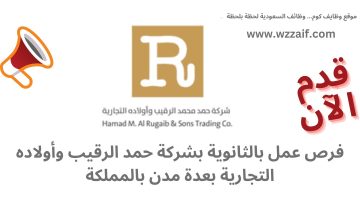 شركة حمد الرقيب توفر وظائف لحملة الثانوية فأعلى بعدة مدن بالمملكة