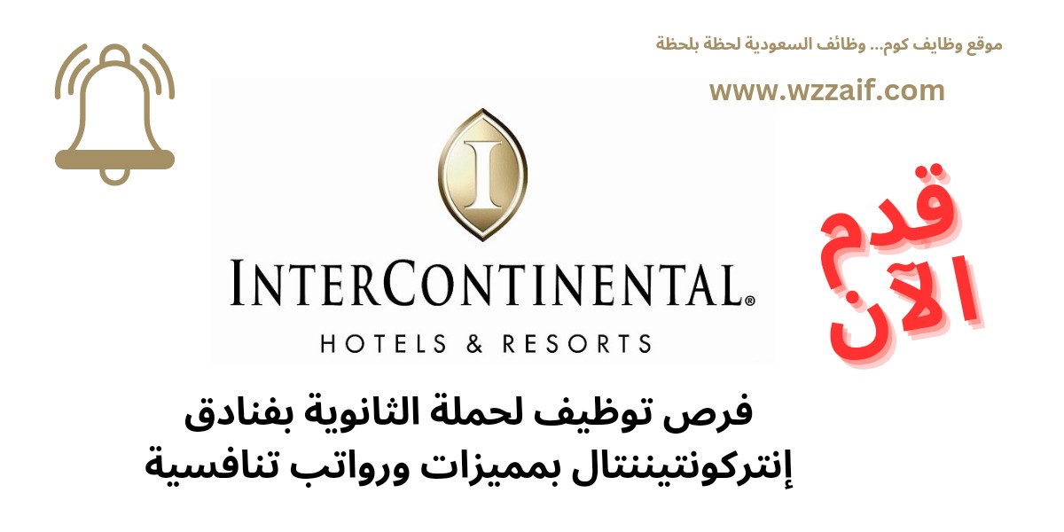 أعلنت مجموعة فنادق إنتركونتيننتال (IHG Hotels & Resorts) عن توافر عدد من الوظائف الشاغرة للحاصلين على الشهادة الثانوية والدبلوم والبكالوريوس فأعلى من الجنسين للعمل في كلا من الرياض وجدة والدمام والخبر ومكة المكرمة والمدينة المنورة والجبيل والطائف وأملج وغيرها وفقاً للمسميات الوظيفية التالية: