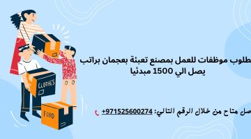 مطلوب موظفات للعمل بعجمان لدى مصنع تعبئة براتبب يصل الي 1500 درهم